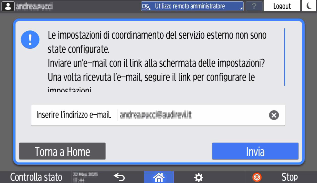 L’e-mail inviata da info@eu.smart-integration.ricoh.com contiene tutti i passaggi necessari per