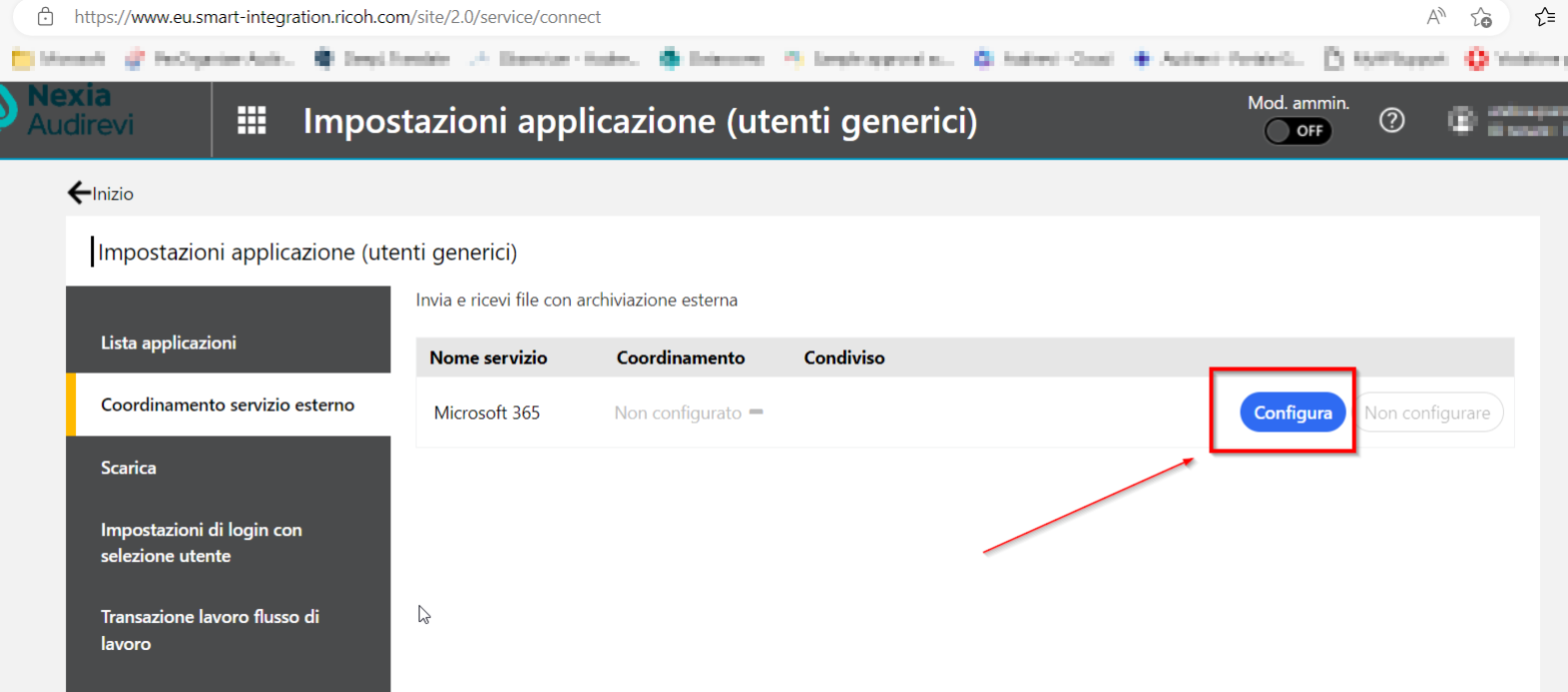 Il link ricevuto tramite e-mail rimanda alla seguente pagina del portale Ricoh. Selezionare Configura